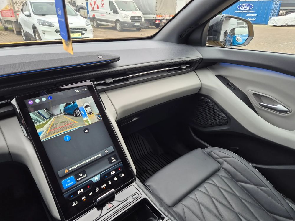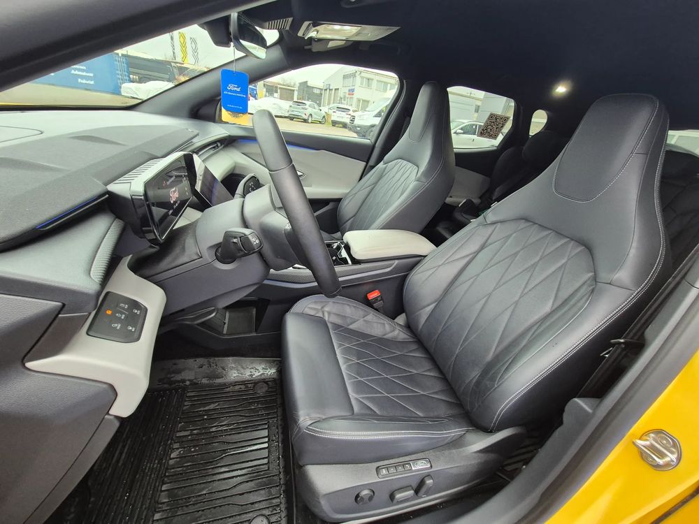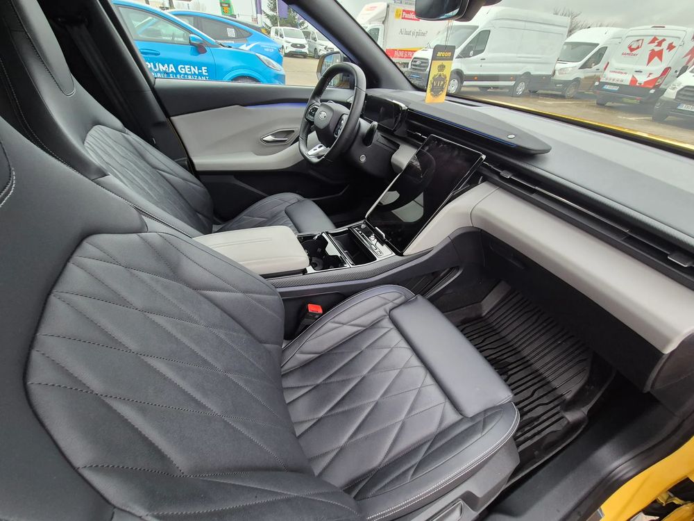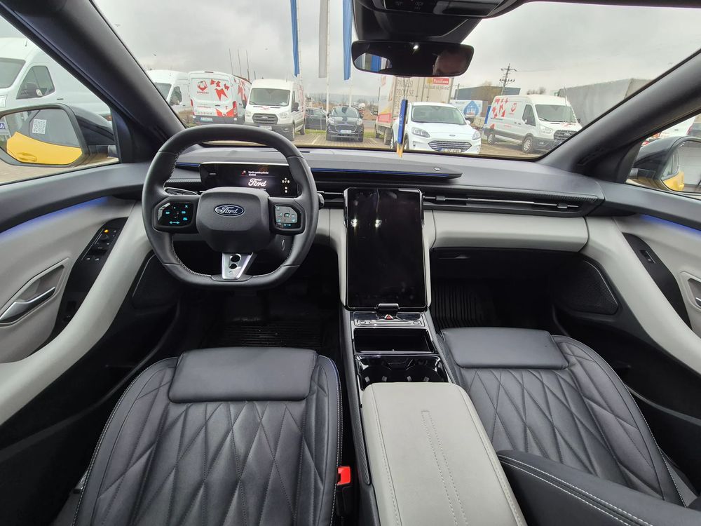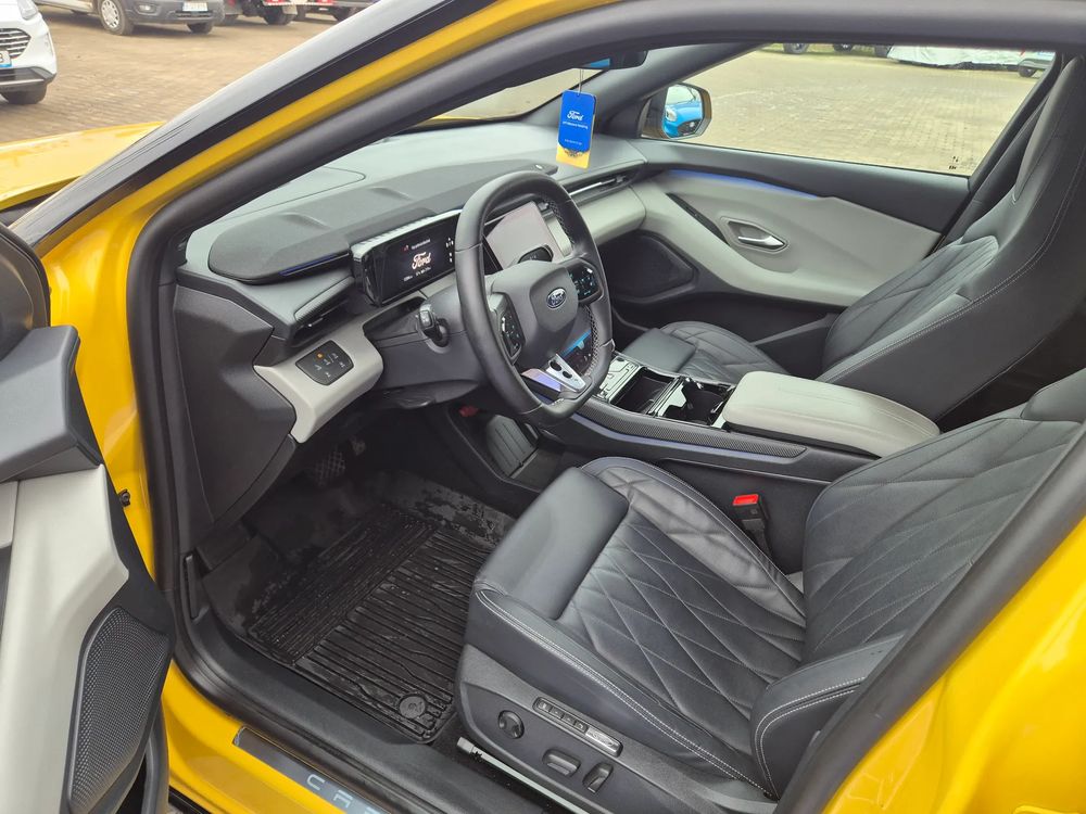 "MegaConsole" cu suport pahare și ventilație spate2 lămpi portbagaj2 porturi încărcare USB C (45 W) față - ACC Media Hub4 cârlige de ancorare portbagaj5 stele NCAPAcces la rețeaua de încărcare Blue Oval (BOCN) – Lifetime gratuit (durata normată de exploatare) după activare.Airbag frontal pasagerAirbag frontal șoferAirbag lateral central șoferAirbaguri cortina (față/ spate)Airbaguri laterale (față)Alertă intersectare trafic (CTA), frânare activă si avertizare la ieșireAsistență la manevrele evaziveAvertizare necuplare centuri de siguranțăBară față - culoarea caroserieiBară spate - culoarea caroserieiCablu de încărcare mode 3 type 2Capace oglinzi de culoare neagrăCenturi de siguranță față pasiveCenturi de siguranță pretensionateCheie secundarăComenzi cu activare vocalăCovorașe față velur (covorașe spate velur)Coș portbagaj - utilizări multipleDecor Liquid CosmosEcran central tactil 14.6" ajustabil cu "My Private Locker"Ecran de bord digital 5.3"Faruri Matrix LED (sistem de comutare automată fază lungă și sistem anti-orbire (Glare-free))Faruri reglabile pe înălțimeFrânare post-colisiuneFrâne cu discuri față 18" / tamburi spate - nivel 2Frână de parcare electrică cu auto-holdGeamuri spate fumuriiImobilizator motorJante aliaj 20" Absolute Black (anvelope 235/50 R20 - față și 255/45 R20 - spate, anvelope cu profil de rulare Eco, prezoane)Kit panăLumini ambientale LEDLumini de curtoazie cu proiecție logoModem integrat FordPass ConnectModuri de condus selectabile: Normal, Eco, Sport, Individual, TractionMânere plafonOglindă interioară electrocromatăOglinzi reglabile încălzite și pliabile electric, cu semnalizări, proiecție logo și memorieOrnamente aripi, mânere exterioare, bandouri vopsitePTC Heater - încălzitor principal habitacluPachet scaune 2 (tetiere față neajustabile, integrate în scaune, spătar scaun șofer reglabil electric, spătar scaun pasager reglabil cu maner rotativ, banchetă rabatabilă 60/40 cu trapă pentru schiuri, scaun șofer cu suport lombar și funcție de masaj, scaun șofer reglabil electric pe 12 direcții cu memorie, scaun pasager reglabil manual pe 6 direcții, scaune față sport)Panouri uși - Space GreyParasolare față cu oglinzi iluminatePilot automat adaptiv cu Stop & GoPort încărcare USB C spate (45 W)Portbagaj cu 2 niveluri de încărcarePreconditionare baterie si habitacluPriză 12V / 120W - portbagajProtecție sub-șasiuProtecții interioare praguri fațăScaun încălzit pasagerScaun încălzit șoferSenzori de parcare fațăSenzori de parcare spateSistem Keyless Entry / Start - pasiv (iluminare mânere exterioare uși)Sistem audio premium B&O (sistem de navigație, radio FM, DAB+ și volum ajustabil în funcție de viteză, 10 difuzoare premium inclusiv soundbar + subwoofer, In-Vehicle Infotainment - IVI cu actualizări OTA (Over-The-Air) și wireless Apple CarPlay / Android Auto)Sistem de alarmă ThatchamSistem de alertă sonoră vehicul AVASSistem de asistență pre-coliziune PCA: alertă distanță DA, avertizare coliziune frontală FCW, frânare de urgență automată în caz de impact iminent cu vehicule, pietoni și cicliști AEBSistem de avertizare oboseală șoferSistem de avertizare unghi mort (BLIS)Sistem de blocare uși spate pentru protecție copiiSistem de dezactivare airbag pasagerSistem de fixare ISOFIX x 2Sistem e-CallSistem inteligent de asistență a vitezeiSistem monitorizare presiune în anvelopeSistem pre-echipare Alcohol InterlockSistem recunoaștere indicatoare de vitezăSpoiler spateStopuri cu tehnologie LED, bandă spate "coast-to-coast"Suspensie față coborâtăSuspensie spate coborâtăTapițerie plafon sport - neagrăTetiere spate reglabile 2 direcțiiTetieră spate centralăTonou (poliță portbagaj)Vehicul Electric (BEV)Vitezometru km/hViteză de încărcare AC 11 KWViteză de încărcare DC - 135 Kw (baterie 77 kWh) / 185 kW (baterie 79 kWh)Volan îmbracat în piele ecologică SensicoVolan încălzit electricVopsea metalizata, Vivid Yellowsistem de ancorare tip chingă - "tether"tapițerie full Sensico Feeltek / Black OnyxÎnchidere centralizatăÎncărcare wireless smartphone compatibilÎnregistrare eveniment rutier (Cerință legală)Ștergătoare parbriz cu senzor de ploaie