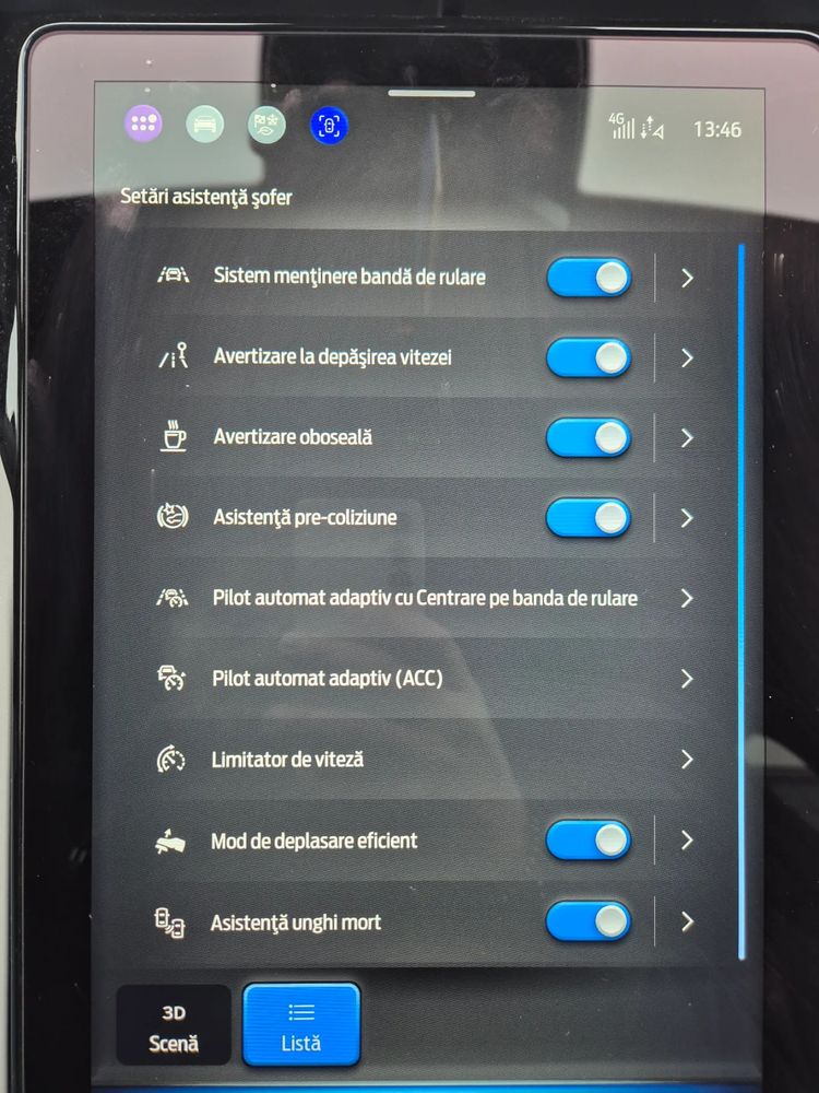 Pachet asistență șofer (sistem de menținere / avertizare la schimbarea benzii de rulare, cu centrare pe bandă, sistem avansat de parcare automată (12 senzori), sistem camere video 360°, Head-Up Display HUD)