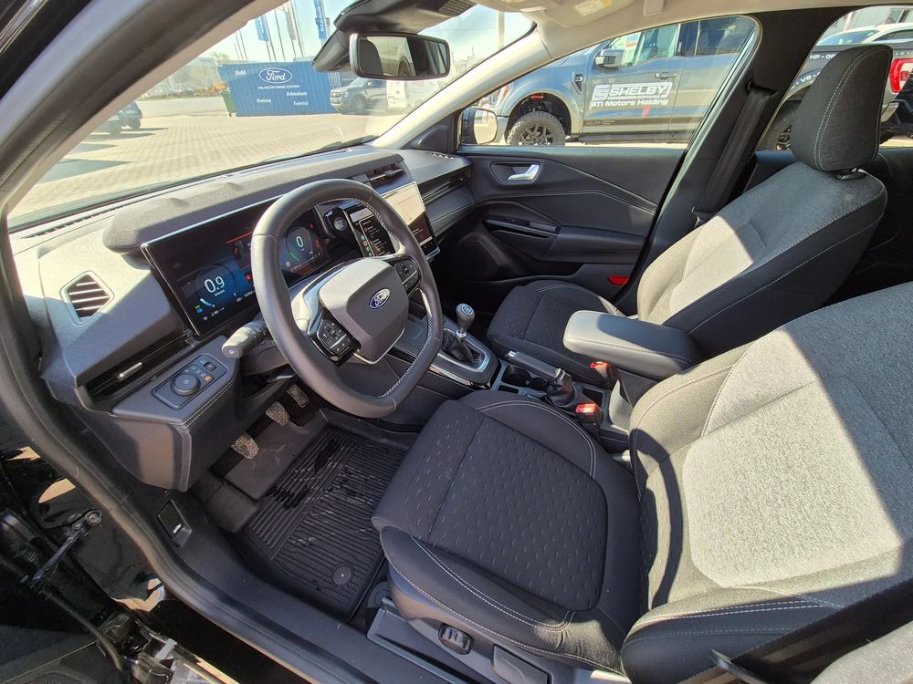 *Aer condiționat automat*Airbag-uri frontale șofer și pasager (airbag-uri cortină - stânga, airbag-uri cortină - dreapta)*Bară frontală și grilă cu design Titanium*Consolă centrală podea cu cotieră și spațiu de depozitare*Covorașe față*Ecran tactil central 12" - orizontal*Faruri cu tehnologie full LED, lumini de zi tip LED*Faruri reglabile pe înălțime*Fază lungă cu comutare automată*Geamuri electrice față cu funcție 1 touch up / down*Geamuri electrice spate*Geamuri fumurii spate*Jante aliaj 17" Black Machined (anvelope 215/55 R17 94H, anvelope cu profil rulare ECO)*Lumini ambientale - interior*Modem 5G integrat - FordPass Connect*Moduri de condus selectabile*Parbriz laminat acustic*Plafon exterior - culoarea caroseriei (capace oglinzi - culoarea caroseriei)*Scaun șofer cu suport lombar*Scaun șofer reglabil manual pe 4 direcții*Senzor de ploaie, ștergătoare automate parbriz (oglindă interioară electrocromată)*Senzori de parcare spate*Sistem EcoCoach - monitorizare condus eficient*Sistem SYNC 4*Sistem automat de închidere a grilei radiatorului*Sistem frânare cu discuri față / tamburi spate*Sistem integrat al dinamicii vehiculului IVD: control tracțiune TC, ABS, ESC, asistență la frânarea de urgență EBA, asistență la oprire / plecare rampă*Sistem monitorizare presiune în anvelope*Sistem multimedia ICE Pack 16, ecran de bord digital 12.8'' (2 USB, sistem de navigație, radio DAB, 6 difuzoare) Spațiu depozitare în portbagaj, partea inferioară - Megabox*Stopuri cu tehnologie LED*Tapițerie textilă negru/gri cu cusături gri*Volan îmbrăcat în piele tip Sensico*Închidere centralizată
